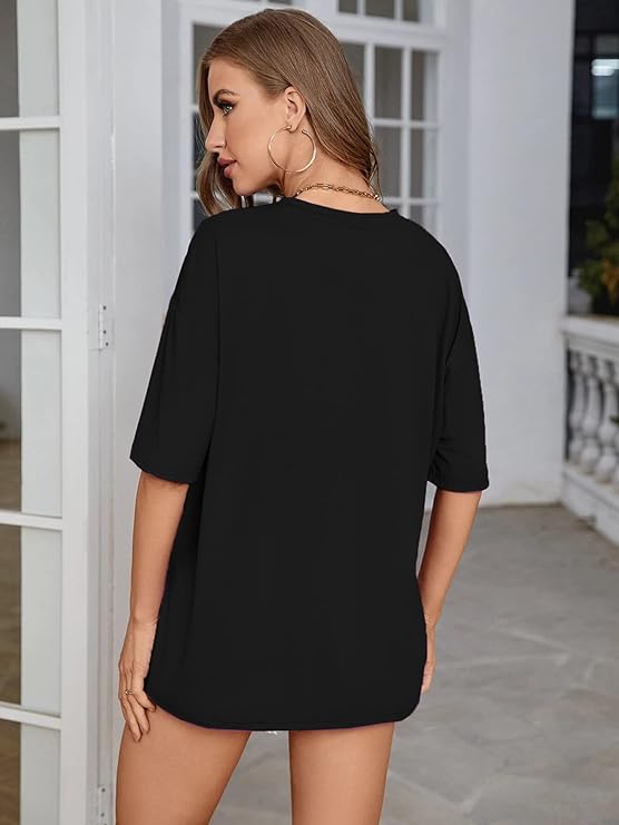 This versatile t-shirt is designed to flatter all body types, offering a comfortable and stylish option for any occasion. Whether you’re running errands, lounging at home, or hitting the town, this oversized tee will keep you feeling confident and looking effortlessly chic.