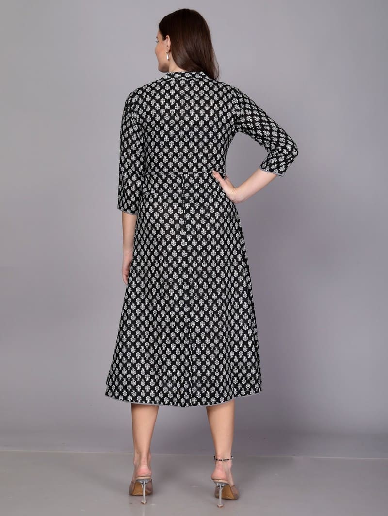 Introduce effortless style to your wardrobe with the Jessie Black Cotton Dress. This versatile dress combines the elegance of a kurti with the comfort of a Western dress. Crafted from premium 60% cotton fabric, it offers breathability and drapes beautifully.