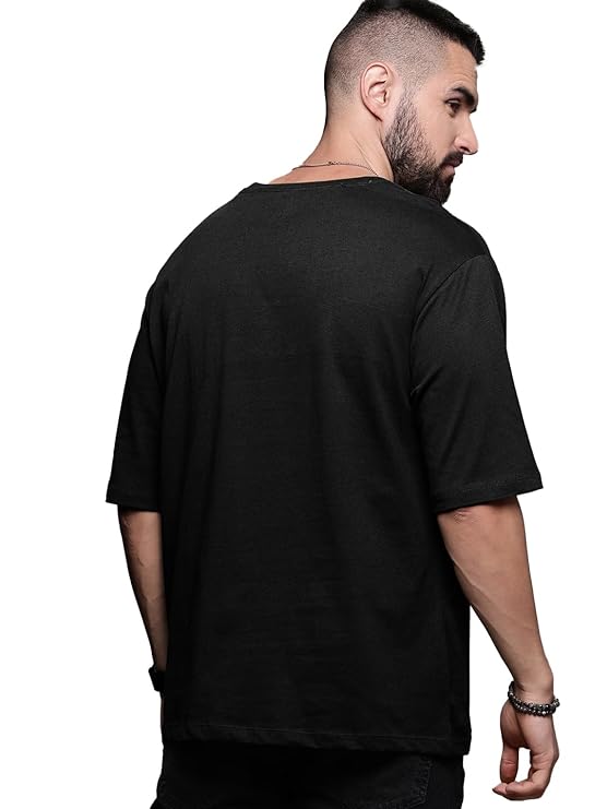 LEOTUDE Half Sleeve Oversized Black T Shirt for Men