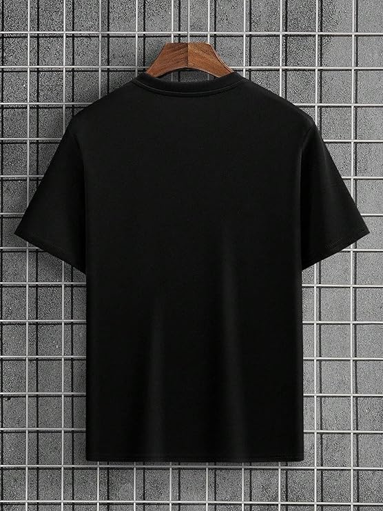 Make a statement with the Lymio Men’s Regular Fit Black Printed T-Shirt. This classic crewneck tee boasts a comfortable regular fit and a bold printed design that adds a touch of personality to your everyday wardrobe. Crafted from breathable cotton, this versatile t-shirt offers all-day comfort, making it perfect for casual outings or layering.